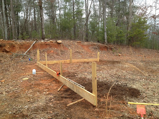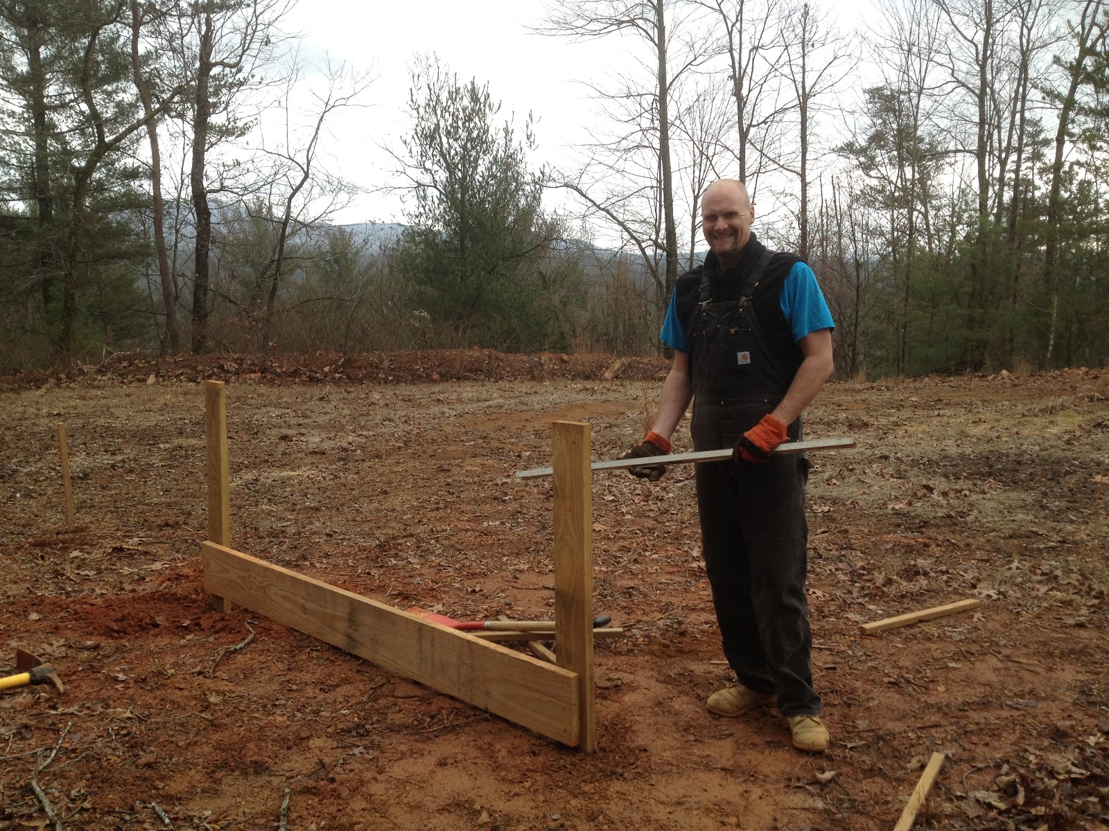 Because the clay is SO hard, it takes quite a while to dig down one foot to insert our vertical stabilizer pieces. As you can see from the picture to the right, the top layer of this area had been scraped down several feet below the surface. Not only does this take away any top soil, but also the softer "newer" soil that usually exists just below the surface. What we have found, is that four feet below where the topsoil once lived, is a sort of rock clay combination that is extremely difficult to dig by hand. Although fascinating in a geological sense, not so much to a girl with a shovel. And a pick. And thankfully, an extremely strong man!