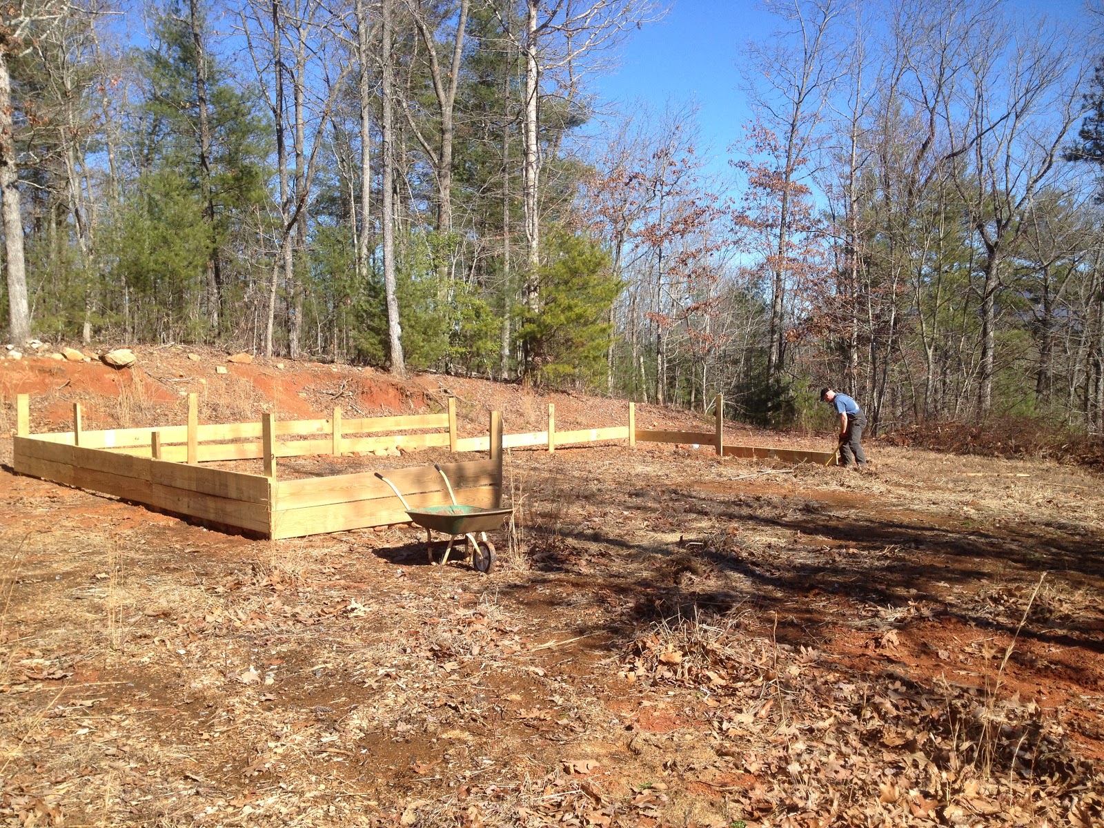 We are using wood from a retaining wall we had been building somewhere else. We thought these resources would go to better use at Pangea, building a garden bed that should be big enough (maybe) to grow everything we want to grow. At least for now! Our future garden beds will be built using existing materials from the land such as downed trees and rocks. We want our gardens to represent sustainability in every way. That includes seed saving and using open pollinated, organic, and heirloom variety seeds (as much as possible), as well as many other ways we can responsibly manage our resources at hand.