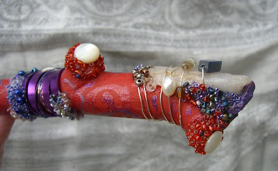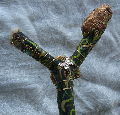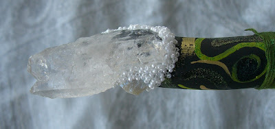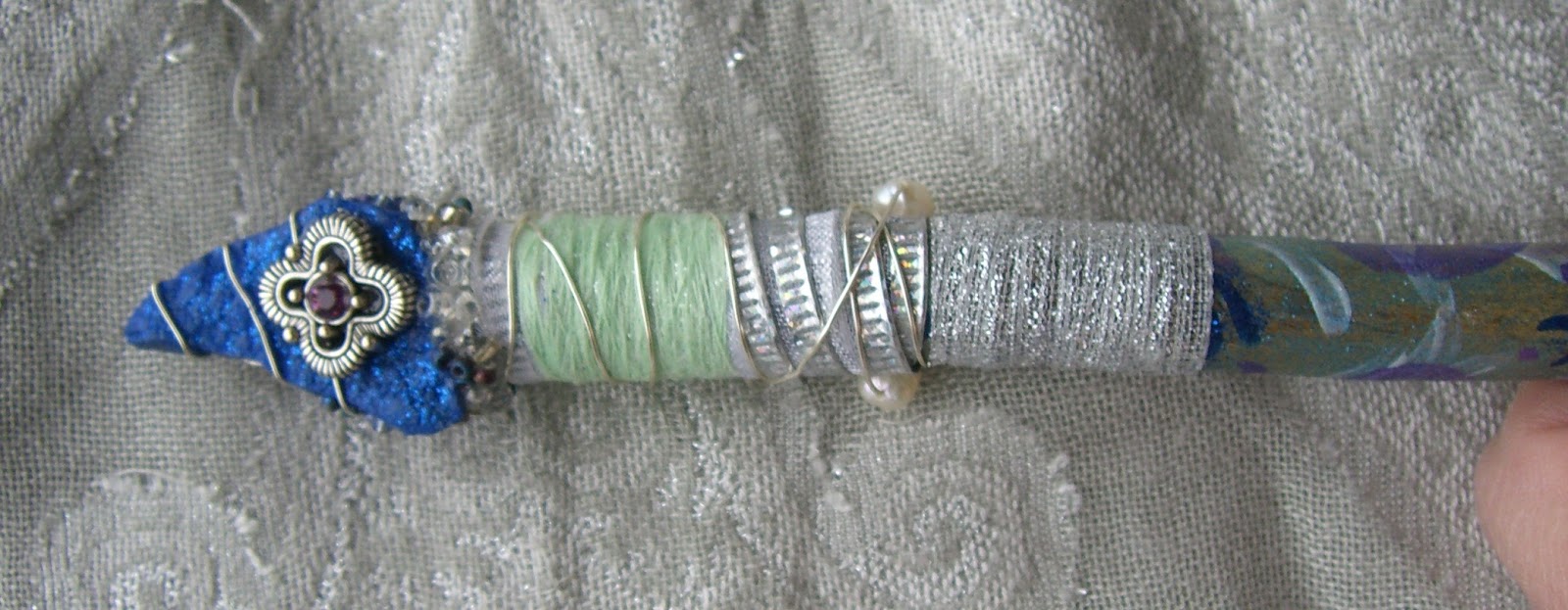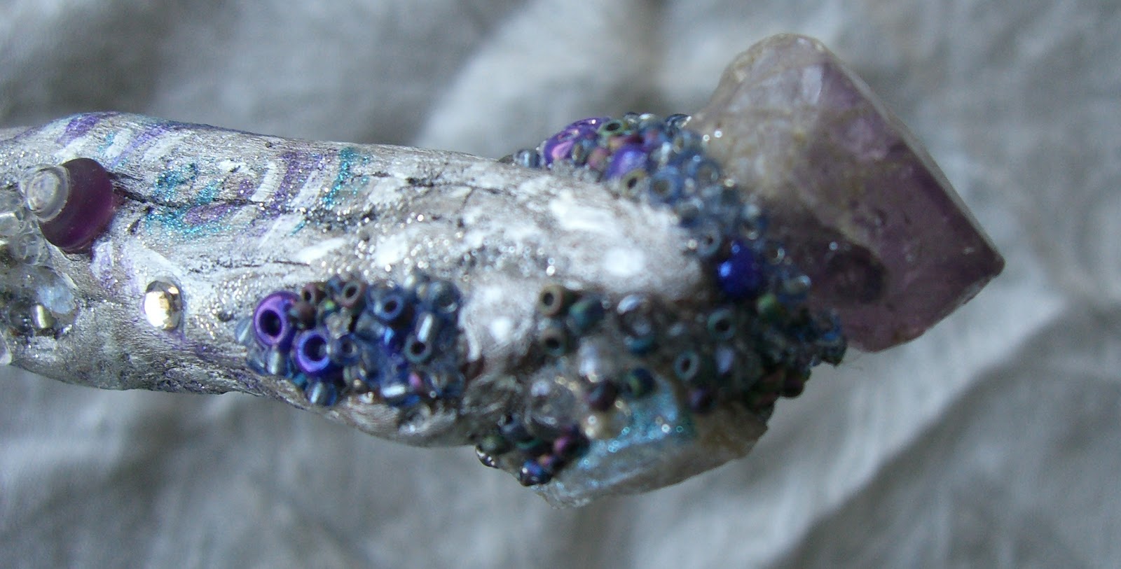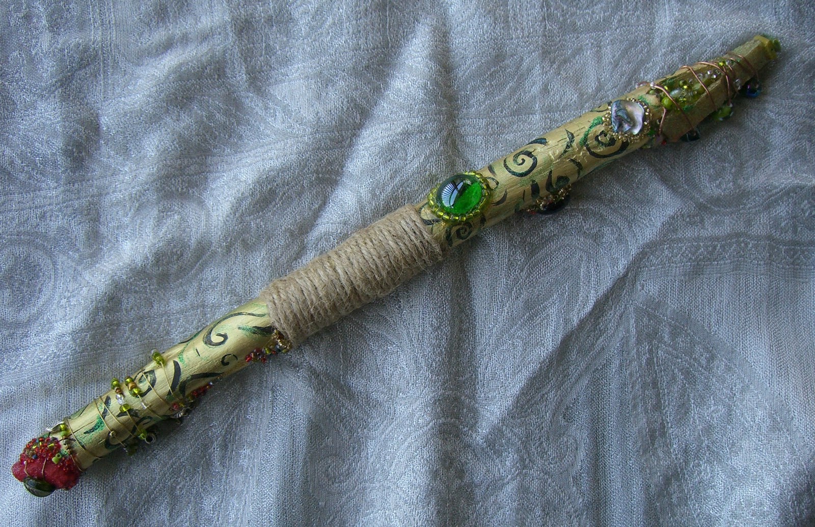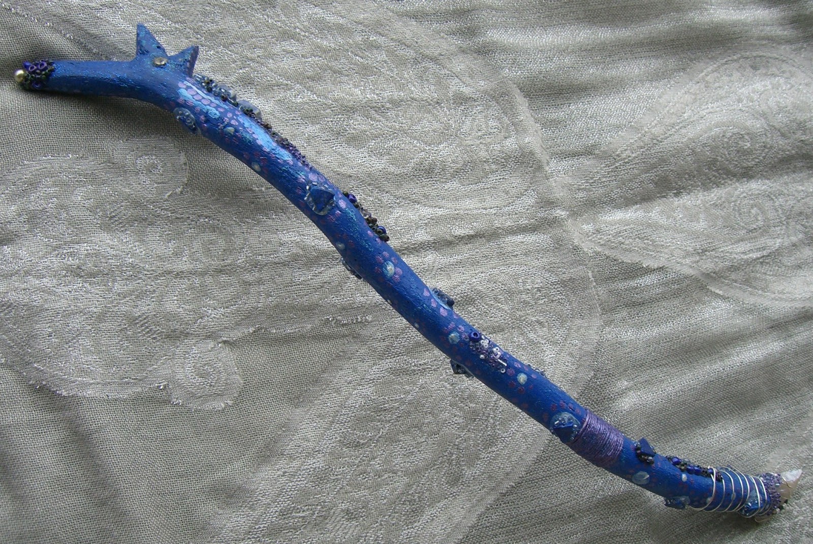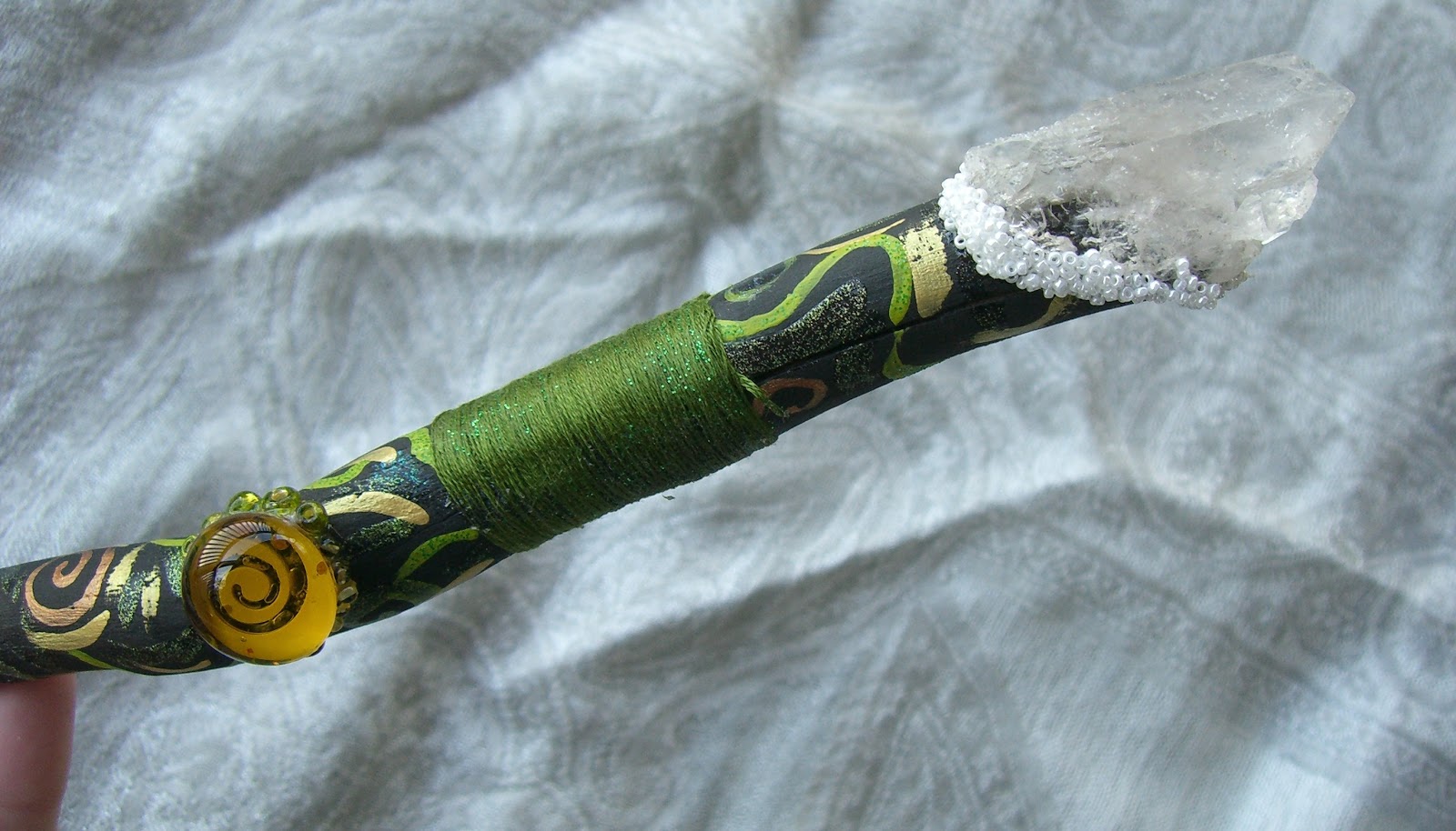The Gemini Spirit Stick is made of oak and measures approximately 15" long. She is adorned with a double clear quartz crystal, as well as north Georgia quartz, beads, thread, wire, brass, charms, and baubles. She is imbued with magic and ready to help you manifest all of your wildest dreams! Instructions enclosed in package.