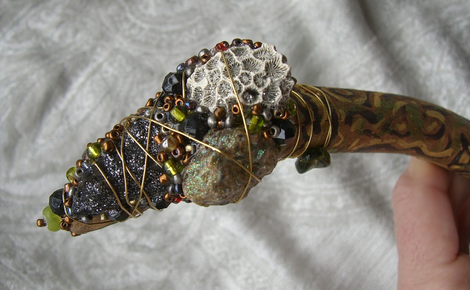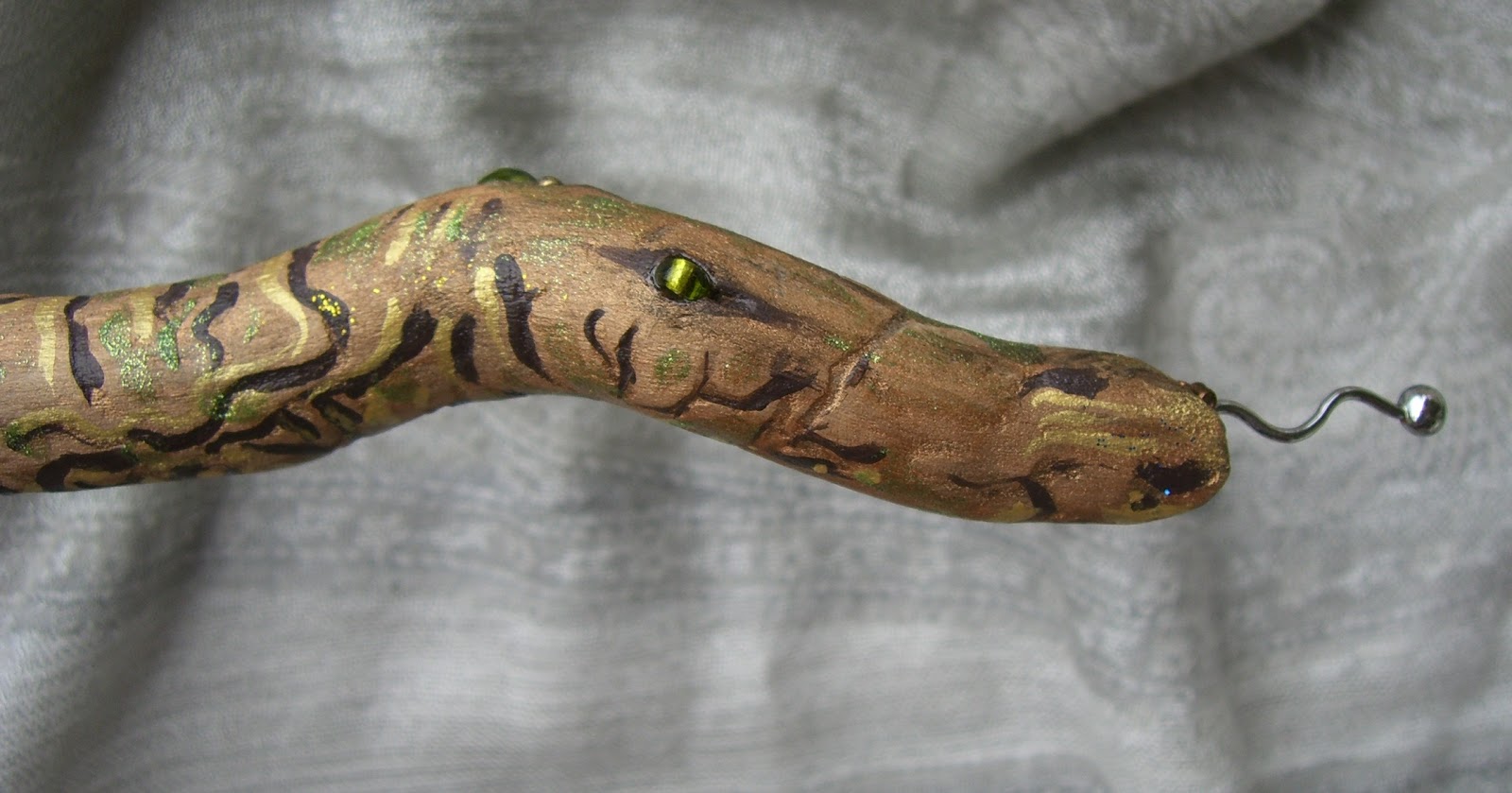 Coral Snake is approximately 17" long and filled with pure pine magic. She has gold wire, glass beads, quartz crystals, a metal tongue, brass baubles, and genuine coral. She is imbued with pure magic and ready to help manifest your dreams come true.
