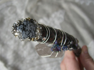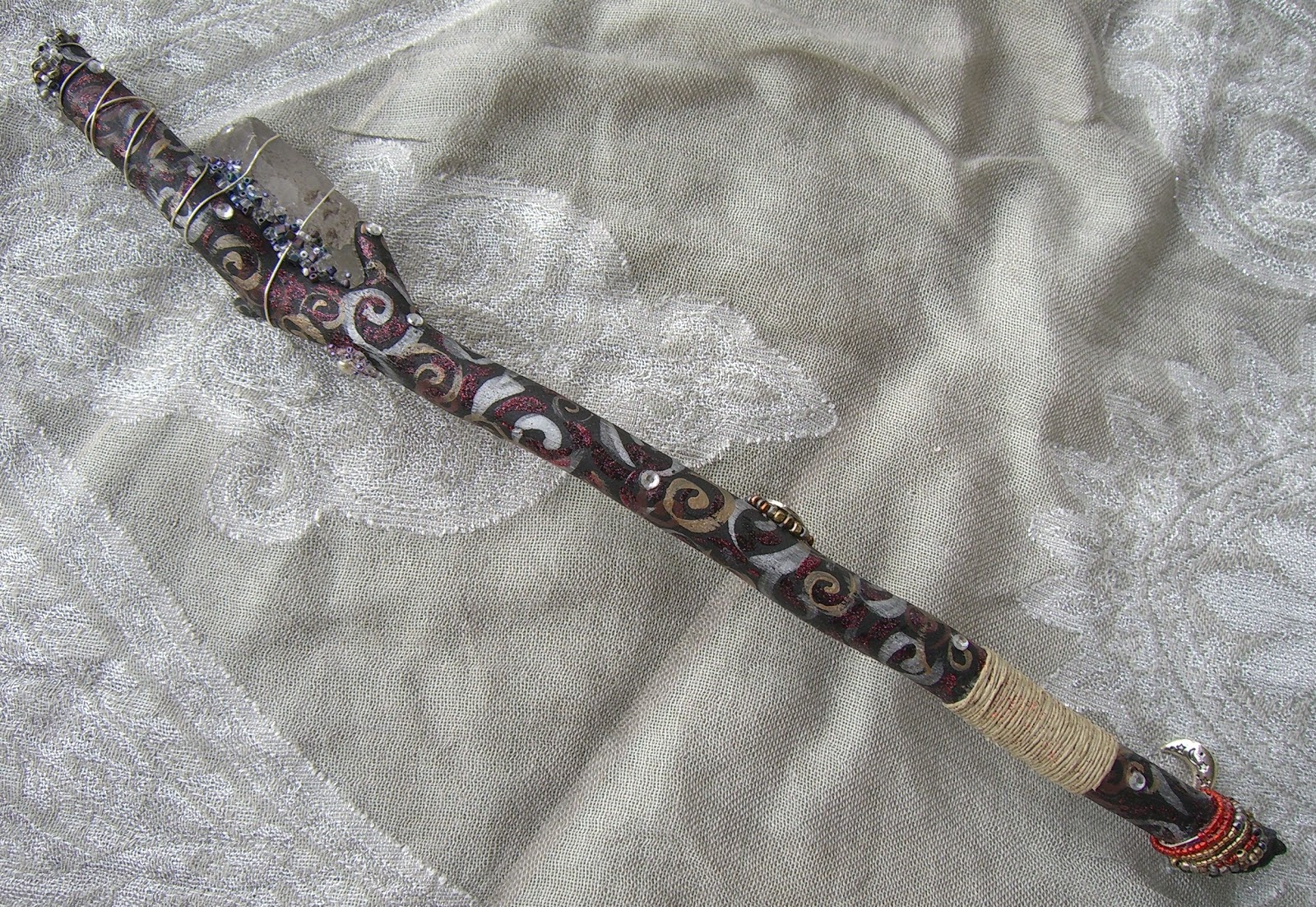 The Pirate Spirit Stick is made of north Georgia pine and measures approximately 14" long. She is adorned with two clear quartz crystals, as well as north Georgia quartz, amethyest, a snowflake obsidian star, beads, hemp twine, wire, pearls, rhinestones, charms, and vintage baubles. She is imbued with magic and ready to help you manifest all of your wildest dreams! Instructions enclosed in package.