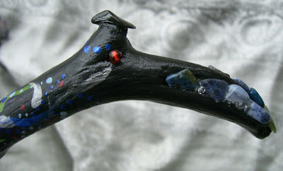 The Fertility Spirit Stick is made of pine and measures approximately 16.5" long. She is adorned with a large quartz crystal point, as well as agate, glass beads, shells, yarn, pearl, mother of pearl, and plenty of baubles. She is imbued with magic and ready to help you manifest all of your wildest dreams! Instructions enclosed in package.