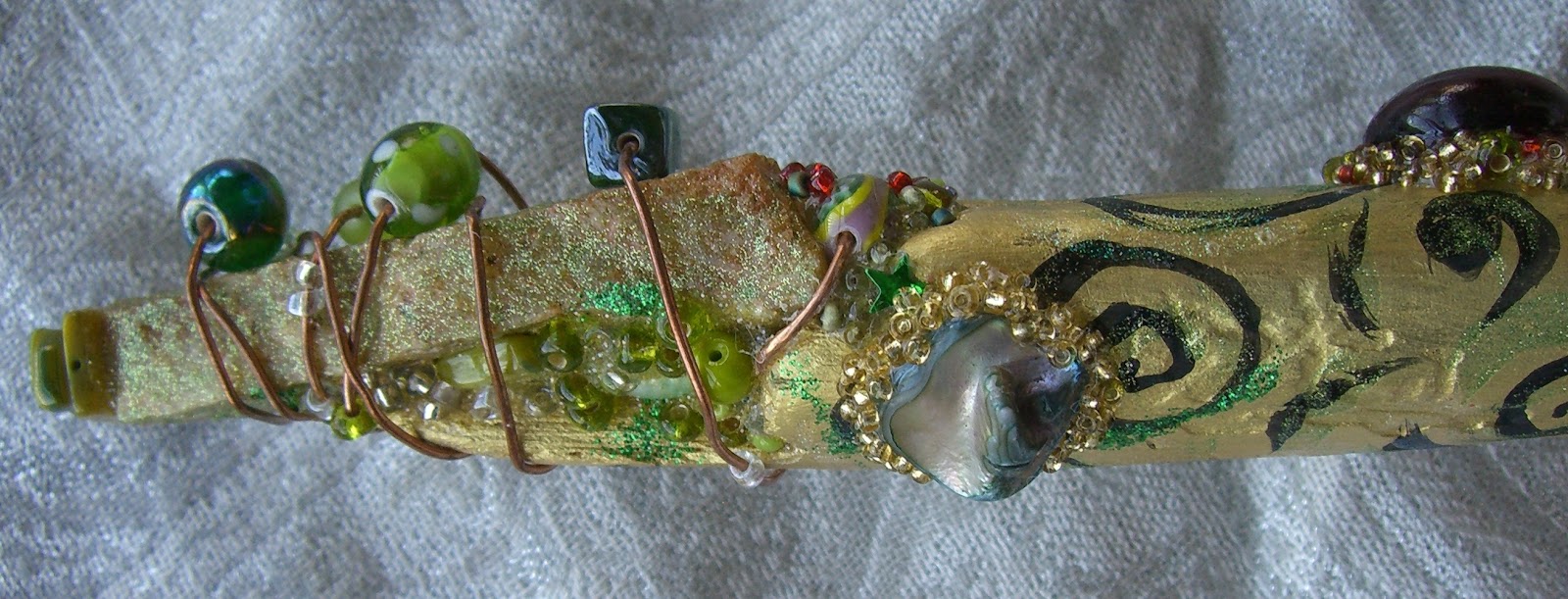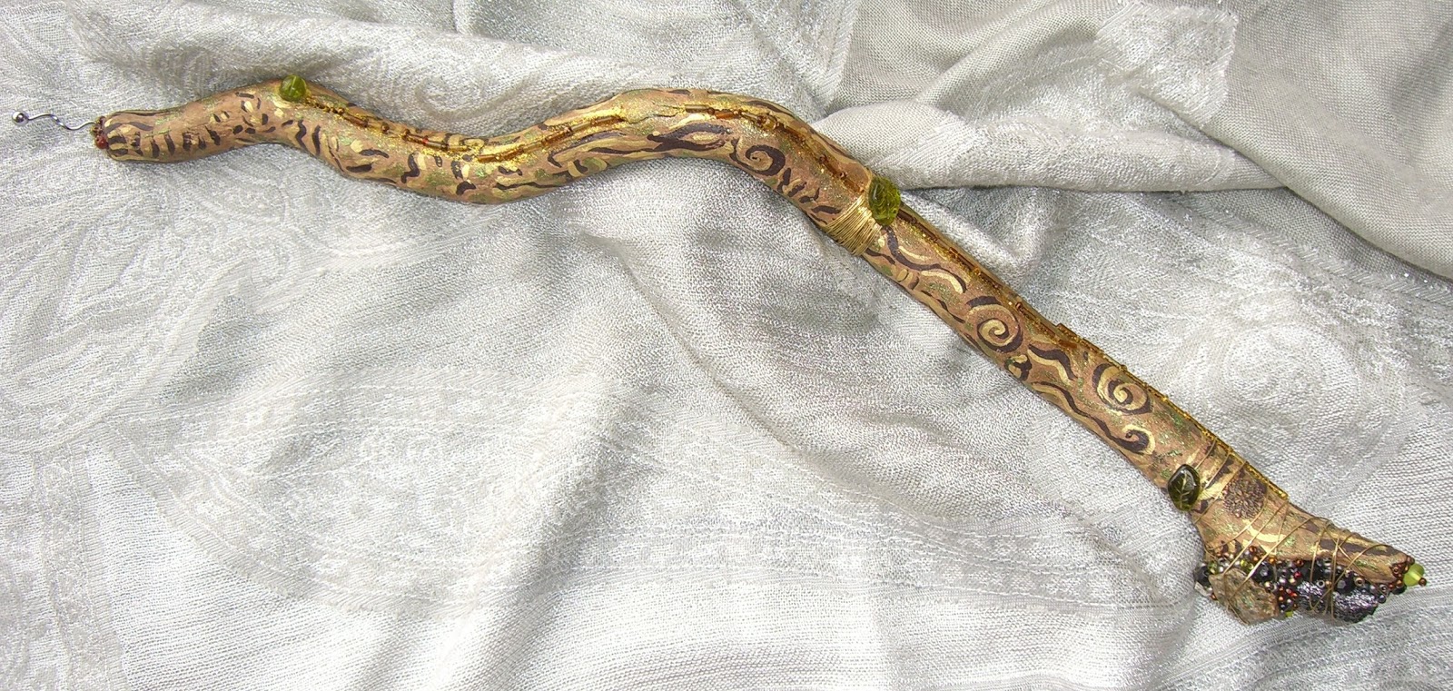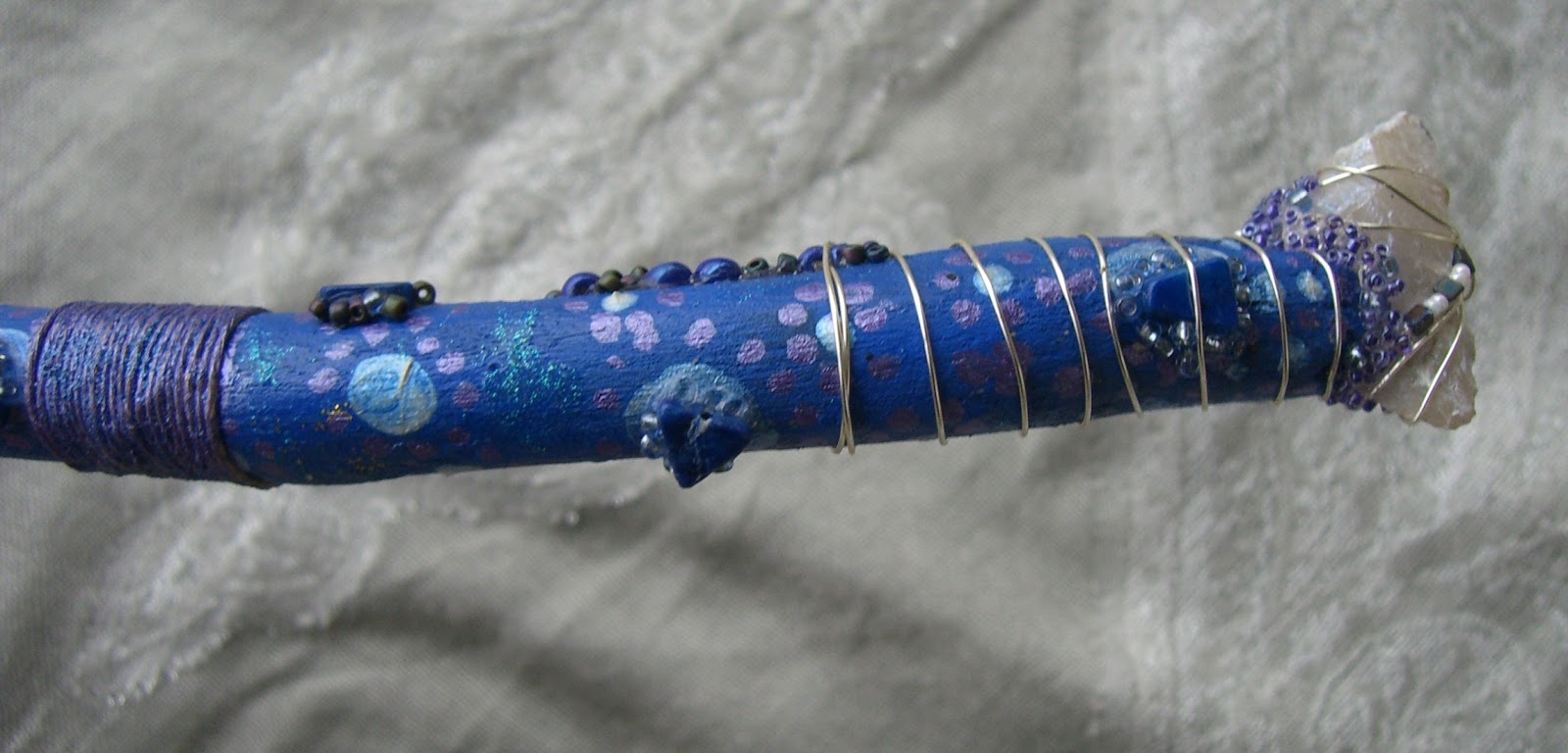 The Gemini Spirit Stick is made of oak and measures approximately 15" long. She is adorned with a double clear quartz crystal, as well as north Georgia quartz, beads, thread, wire, brass, charms, and baubles. She is imbued with magic and ready to help you manifest all of your wildest dreams! Instructions enclosed in package.