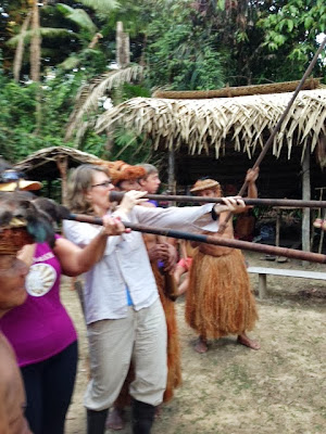 Then the chief showed us how they make a blow dart gun for hunting monkeys, birds, and other small animals for food. They let us shoot with them and aim at a target. I was two for two and I'm seriously considering a career change.